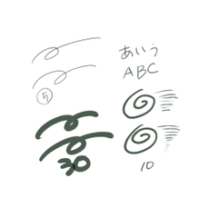 Da die Zeichenfarbe so eingestellt ist, dass sie sich nach und nach mit Strichen usw. ändert, eignet sie sich besonders für Graffiti und grobe Bleistifte, die so aussehen, indem einfach geeignete Linien wie Metalldekorationen übereinander gelegt werden.