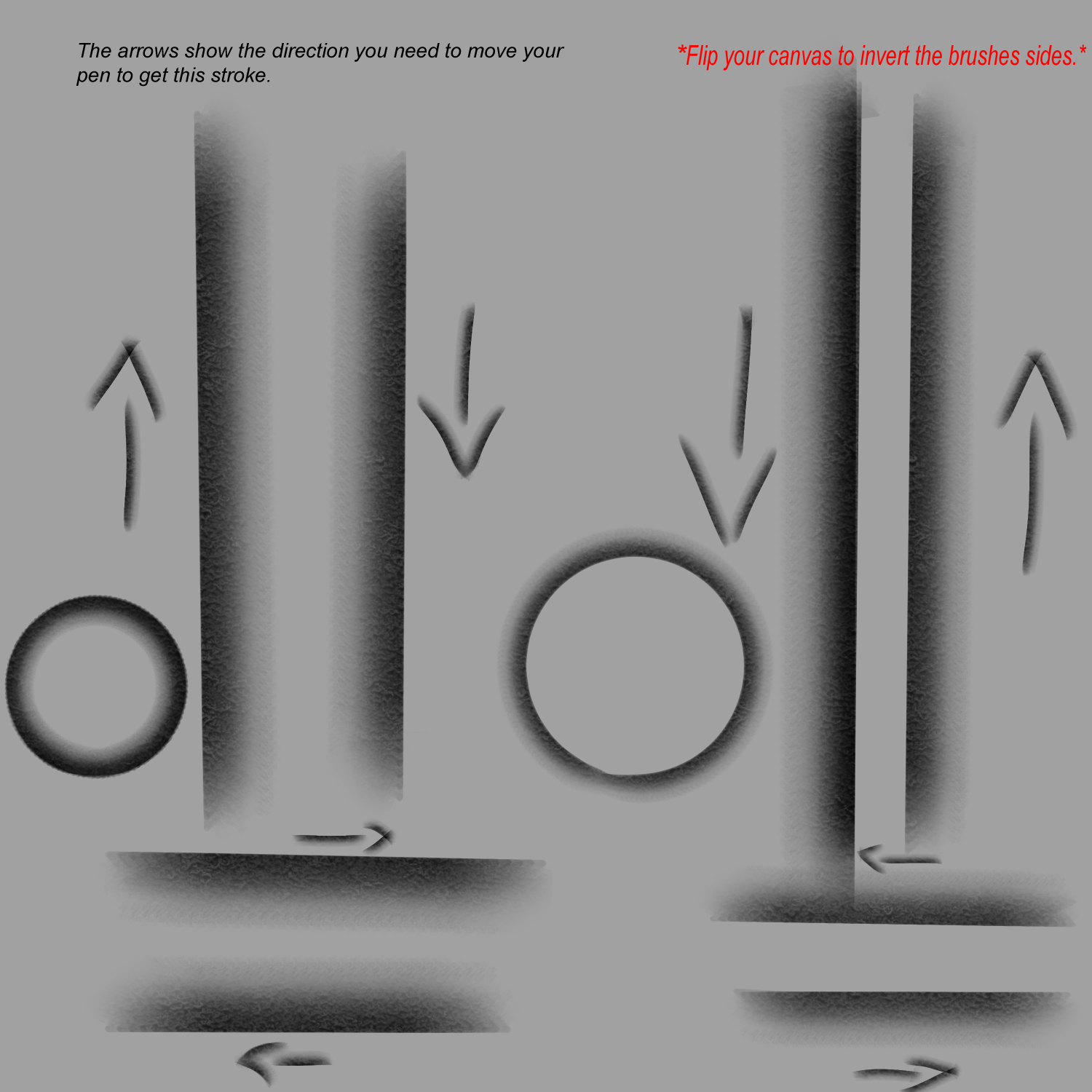 Das ist ein halb harter, halb weicher Pinsel, den ich gemacht habe, um Formen schneller zu rendern. Dieser Pinsel basiert auf der Richtung des Stifts, daher musst du deine Leinwand umdrehen, um die weichen und harten Seiten umzukehren. This is a half hard, half soft brush I made to render forms faster. This brush is based on pen's direction so you need to flip your canvas to invert the soft and hard sides.