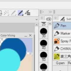 色塗り作業でブラシを利用することを考慮してブラシサイズパレットを縦表示にしています。よく利用するブラシサイズを登録して使いやすい位置に移動しておきます。