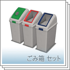 「ごみ箱 可燃ごみ」「ごみ箱 不燃ごみ」「ごみ箱 資源ごみ」の3つの素材のセットとなっております。
