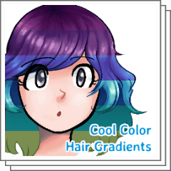 Three sets of gradients to color purple, blue, or green hair with!
