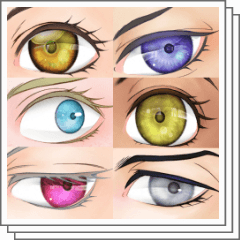 初期の素材集には瞳の画像素材はありませんでしたが、「そもそも目の丸が描けないし」とのお声を頂き追加しました。