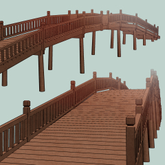 The long wood bridge 3D with 3 materials -- default white, wood, and red wood. The railing are removeable.