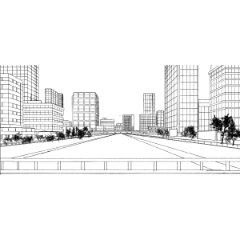 A one point persepective background for a city setting.