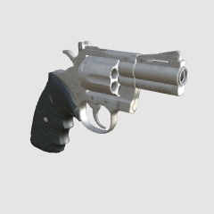 A 2.5-inch short model of a revolver that uses 357 magnum bullets.