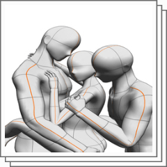 This is poses of 3 people hugging each other. The previous version was rejected bcs of several issues.