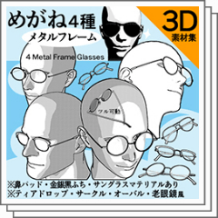 めがねのメタルフレーム版の4種素材集です。ぎりぎりまで細くしたので高級…に見えるかも。鼻パッドも作りました。