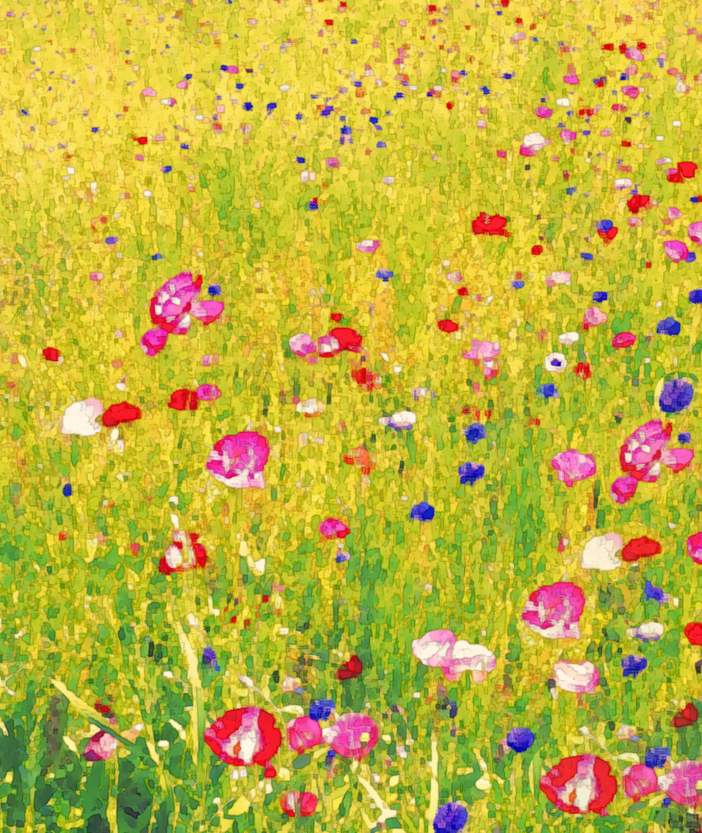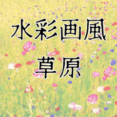 Watercolor-style grass and poppy flowers 水彩風の草むらとケシの花です