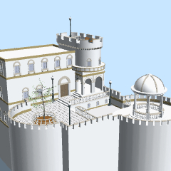 ・城の鋸壁のある外観をバルコニーにした3D素材です。