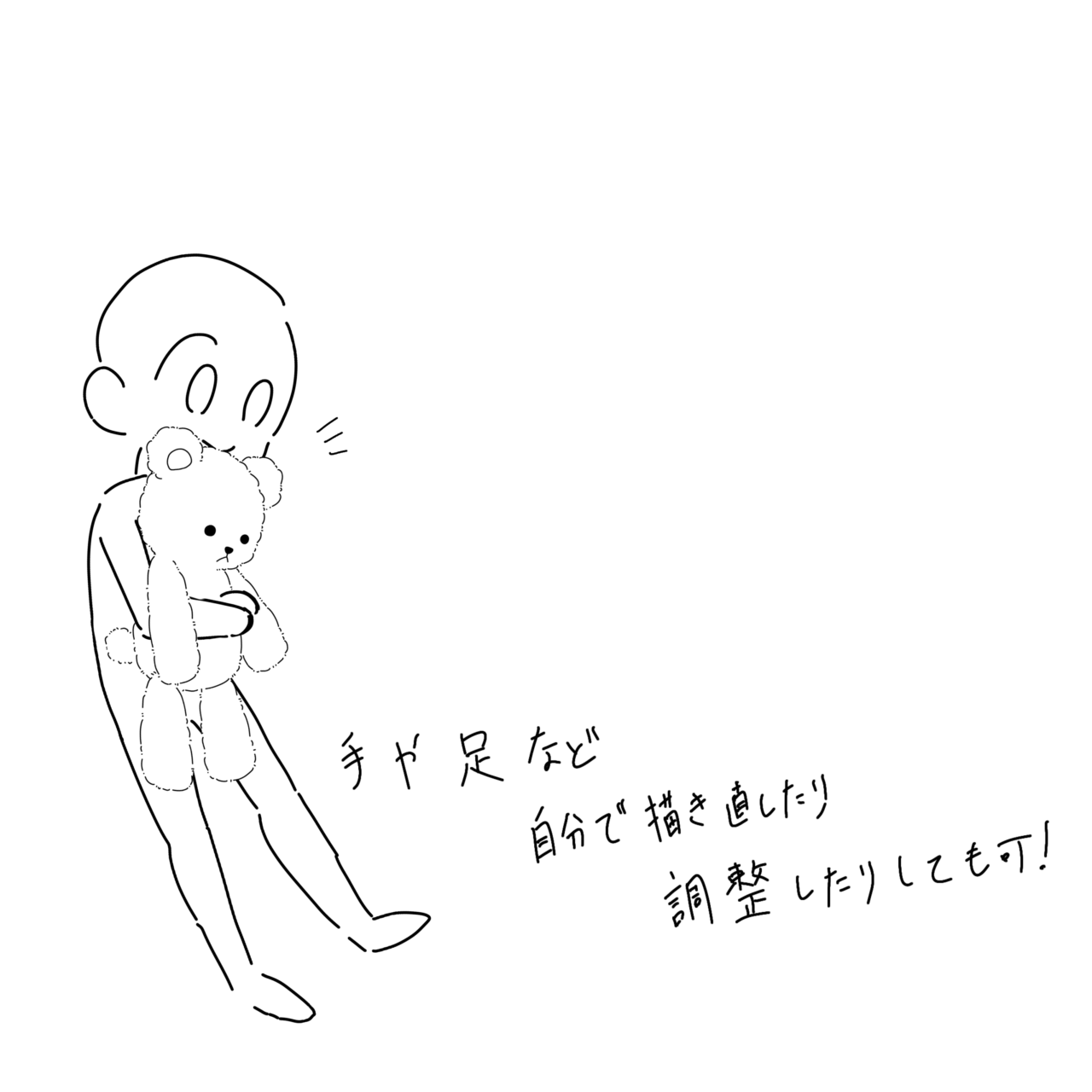 It is a teddy bear that is being hugged or floating in the air. I think it can represent a teddy bear being hugged by small children, adults, and others. You can freely adjust and move your facial parts and limbs. 抱きしめられてる、または宙に浮いてるテディベアです。小さな子や大人、その他に抱きしめられてるテディベアを表現することができるかと思います。顔のパーツや手足の調節移動はご自由にしてもらって構いません。