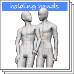 A set of poses of two 3D models.