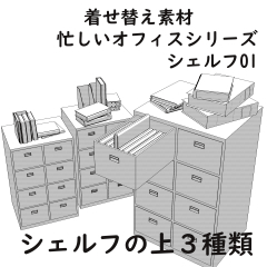 着せ替え素材第一弾、忙しいオフィスのシェルフ01です。