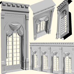 Es un material 3D para el lado de la ventana del claustro en castillos y palacios.