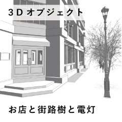 店舗外装とその横の電灯と街路樹を作りました。