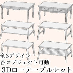 3Dのローテーブル、デザイン6種類セットです。