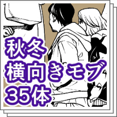 秋〜冬の現代衣装の横向きのみランダムモブです。35体描きました。
