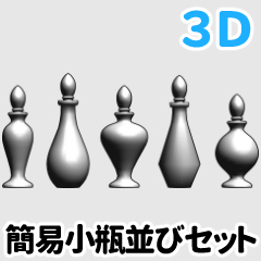 小瓶の3Dモデルです。デザイン違いで5つ並んだオブジェクト。