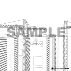 建物とタワークレーンのあるエリアの 3D 背景。