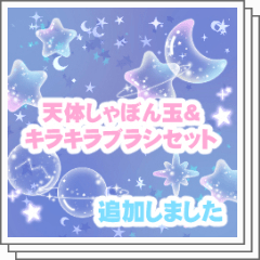 天体モチーフのしゃぼん玉と組み合わせたら可愛くなるキラキラブラシです。絵柄にあいそうでしたらどうぞ!