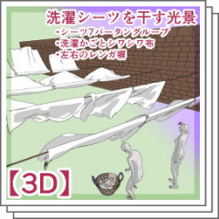 洗濯シーツを干す光景【3D】