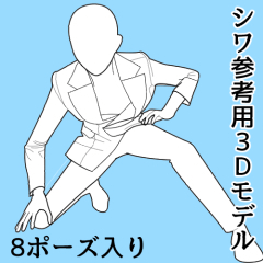 しわだけの参考にするもよし、3Dをラスタライズしてそのまま使うも良し作画の時短にお役立てください。