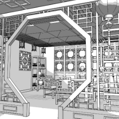 中華風の個室の3D素材です。