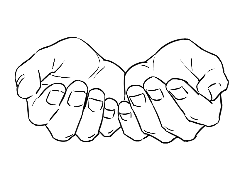 세수할 때, 물을 받을 때, 받드는 손