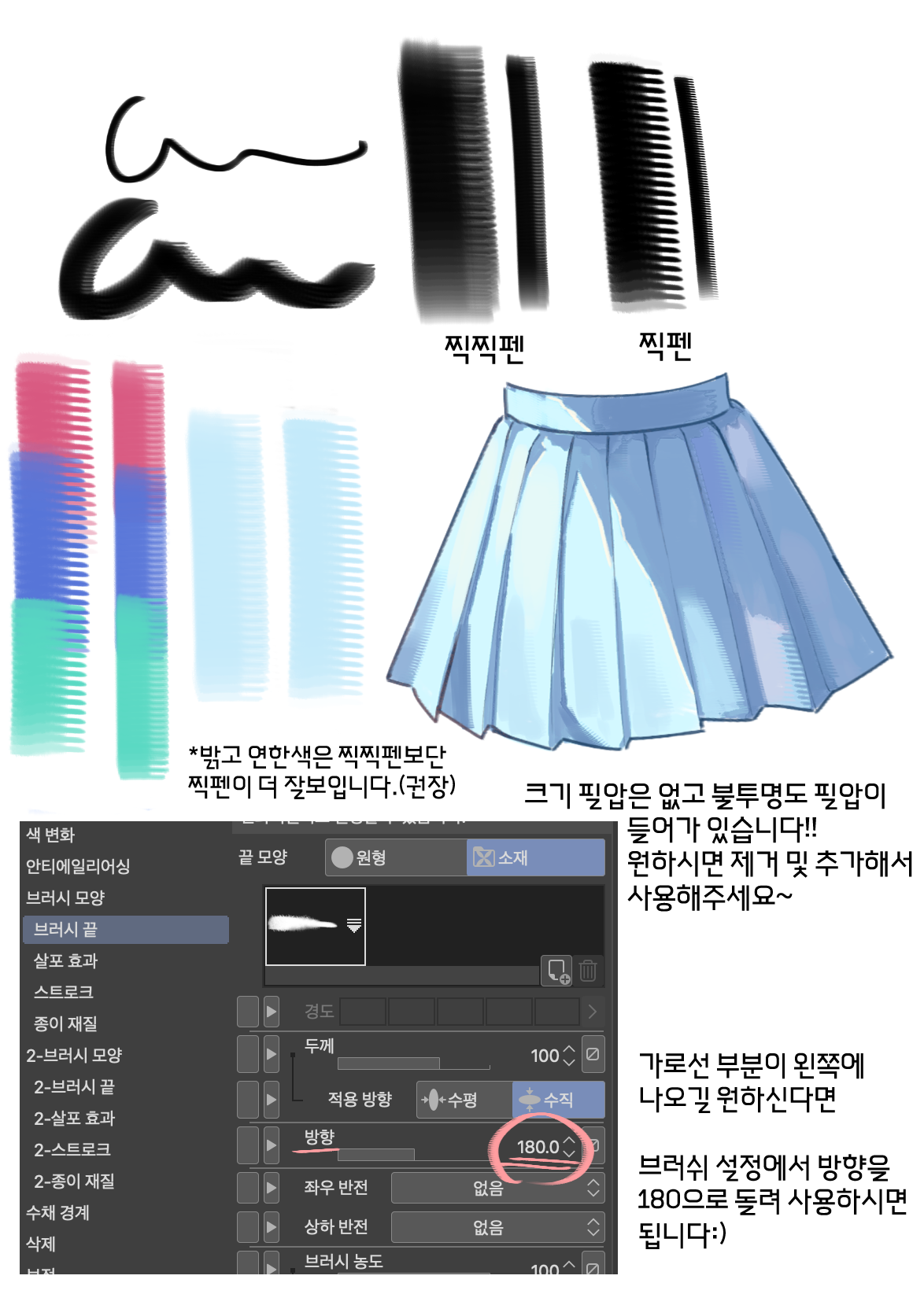 머리카락 묘사를 더해주는 포크 브러쉬 같은 느낌을 만들어봤습니다.