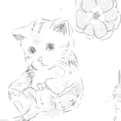 일부 새끼 고양이와 꽃의 (스크린) 톤 패턴! 귀여운 패브릭 패턴, 배경 등으로 사용하십시오. A (screen)tone pattern of some kittens and flowers! Use it as a cute fabric pattern, background, etc.
