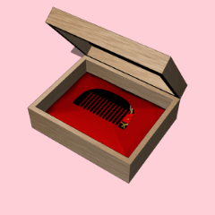 청혼을 위한 선물용 상자입니다. 과거 동양에서는 빗을 선물하는것이 청혼의 의미였다고 합니다. 3D 나무 상자 안에는 동백꽃이 그려진 빗이 있습니다.