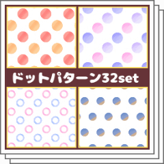 푹신푹신한 분위기의 밝고 가리 같은 수채화 풍의 도트 무늬 등 32 소재 세트입니다. ふんわりとした雰囲気の水彩風のドットパターンの明るめやガーリーな雰囲気のものなどの素材32個のセットです