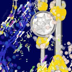 色とりどりの筆は、異なる色の点の並びでできているが、その点のつなぎ目で合流し、新しい並びが始まる。筆は絵を描くのを止めると終わる。 :)