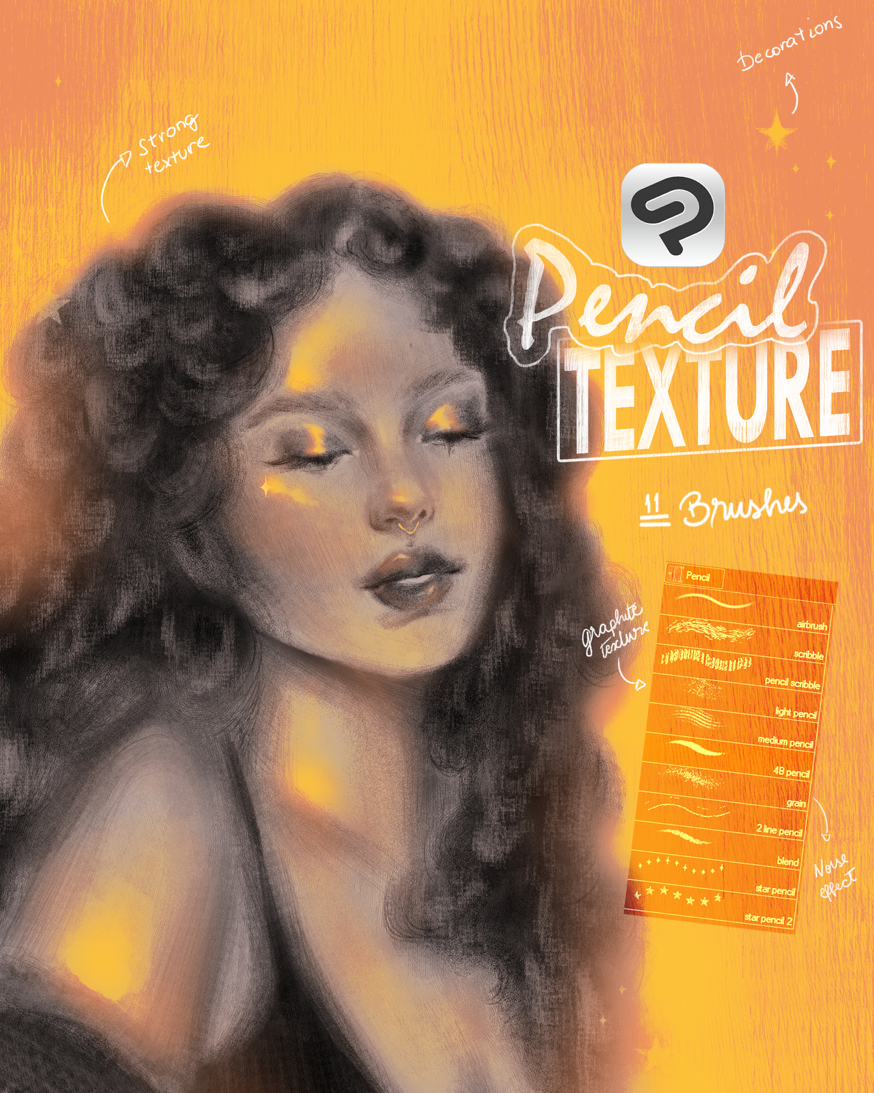 This Textured Pencil Brush Pack was designed for artists who want natural pencil shading, organic hatching and rich grain without the plastic smoothness of default digital brushes.