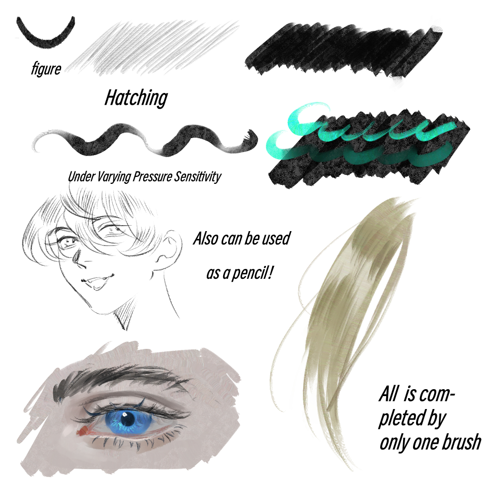 이 브러시가 제가 가장 자주 사용하는 브러시입니다. 대부분의 삽화는 이 한 붓만으로 완성됩니다. 세부 묘사를 다듬는 데 자주 사용되지만, 스케치, 잉킹, 색상 블로킹에도 활용될 수 있습니다. 매우 부드러운 압력 감응성을 가지고 있으며, 색조 지터 특성이 그림의 세부 묘사를 크게 풍부하게 하여 작품에 더 많은 시각적 정보를 더합니다. 손길 감각과 취향에 맞게 설정을 자유롭게 조정하세요! This is my most frequently used brush. The majority of my illustrations are completed using just this one brush. It is often used for refining details, but it can also serve for sketching, inking, and blocking in colors. It features very smooth pressure sensitivity, and its hue jitter property can greatly enrich the details of a painting, adding more visual information to the artwork. Feel free to adjust its settings to match your own hand feel and preferences!