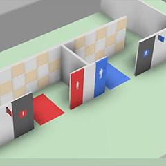 백화점, 영화관, 놀이시설, 학교, 기차역 등의 화장실 앞 장면은 어떨까요? (남성 및 여성 마크는 자작 원본입니다)
