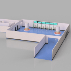 エレベータ、トイレ、発券機、受付など最低限必要なアイテムを用意しました。