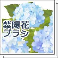 先に葉のブラシを使ってその後花を乗せて下さい。茎を手描きで描き足し、紫陽花の葉(暗)で暗い部分の葉を足します。
