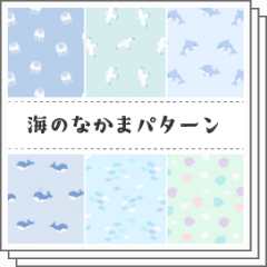 海の生き物をモチーフにした手書きのシームレスパターンです。
