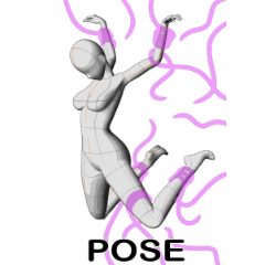 このポーズは、鎖、觸手、ロープ、魔法に捕まり、空中に吊るされた男性と女性の両方に使用できます。