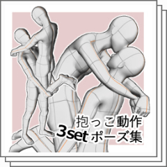 這是一組 3 個通過推動接吻動作的姿勢。 押し押しでキスする動作のポーズ3セットです。